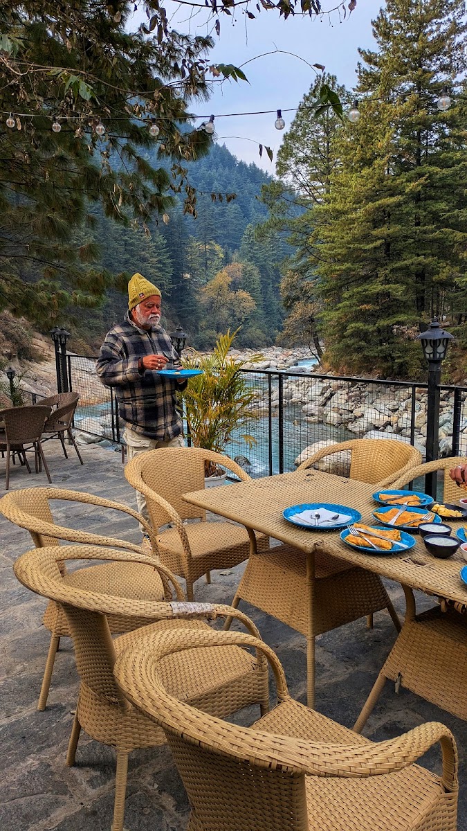 The café offers a diverse menu that caters to a variety of palates, making it a delightful spot for everyone. From robust breakfast options to delightful snacks and satisfying meals, you can indulge in the rich flavors that define this picturesque location. Imagine enjoying a hearty meal while gazing out over the serene river, surrounded by the majestic mountains of Kasol.